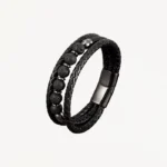 Le bracelet en cuir tressé Nautilus marie modernité et artisanat pour sublimer votre poignet. Confectionné à la main en cuir véritable, il associe une bande lisse et une tresse géométrique pour un rendu distingué. Le fermoir magnétique en cuivre assure une fermeture sécurisée et facile à manipuler. Disponible en noir sobre ou en bleu profond, il s’adapte à toutes vos tenues, du jean casual au costume. Choisissez la longueur idéale (18,5 cm, 20 cm ou 22 cm) pour un confort optimal et un maintien parfait.